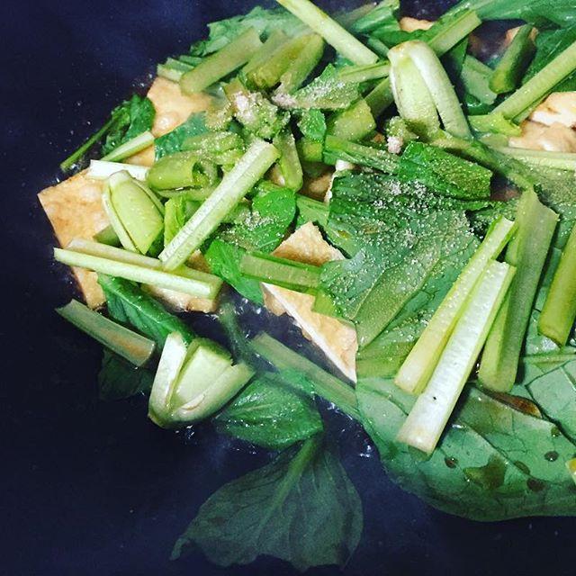 こんな時間に料理 料理楽しい!!! いろんな料理作れるようになろう\(^o^)/ #深夜料理 #鉄分豊富 #小松菜 #油揚げ #このセット #鉄分吸収良い
